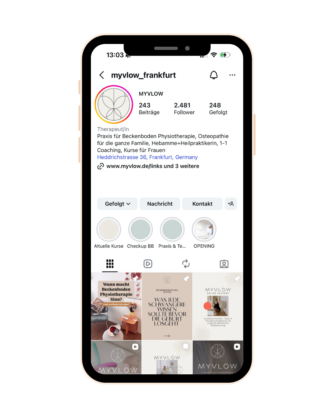 MyVlow ist eine Physiotherapiepraxis in Frankfurt am Main mit Spezialisierung auf Frauengesundheit – insbesondere Beckenbodentherapie.