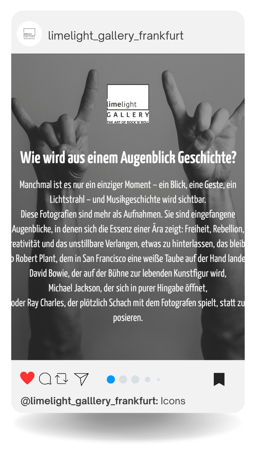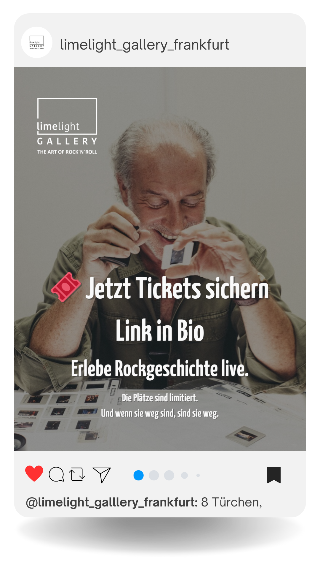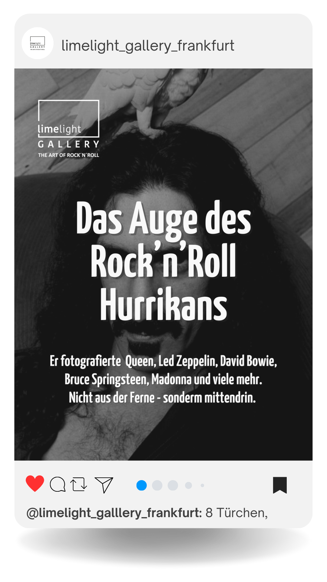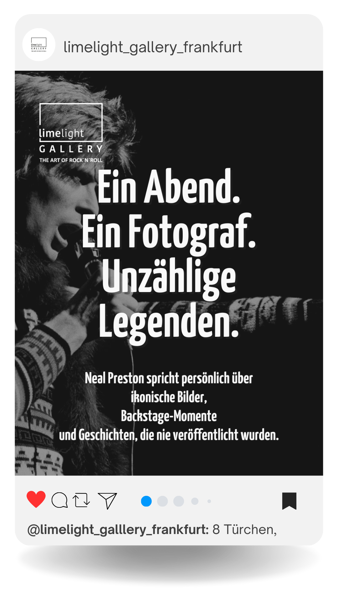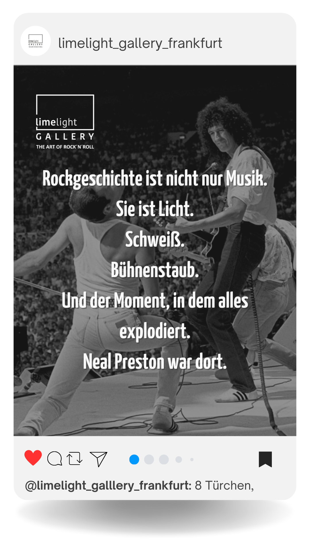 Die Limelight Gallery ist eine etablierte Fine Art Gallery in Frankfurt am Main mit hochwertigen Kunstdrucken von Pop- und Rockikonen der 60er-, 70er- und 80er-Jahre.